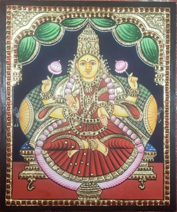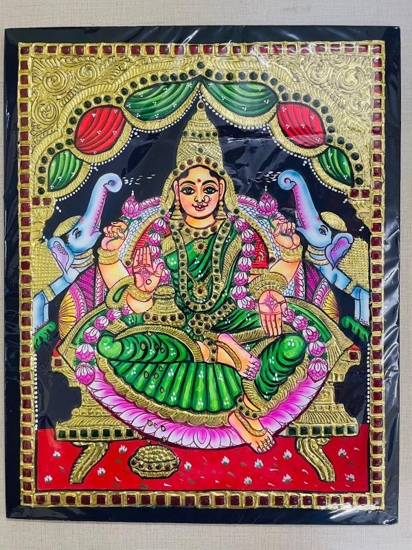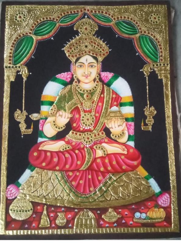 Dhanalakshmi Tanjore Painting is a revered depiction of Goddess Lakshmi, the Hindu deity of wealth, prosperity, and abundance. In this form, she is specifically associated with financial success.