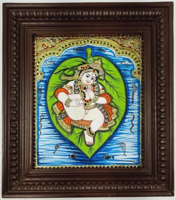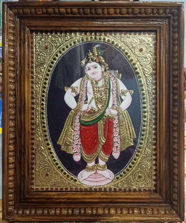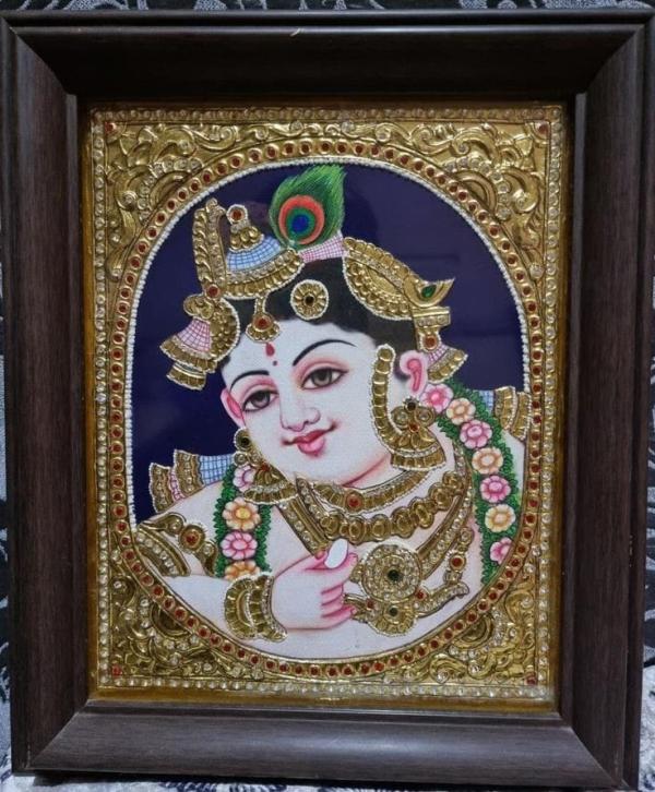 A Krishna Tanjore painting is a revered devotional artwork that captures the divine essence of Lord Krishna.