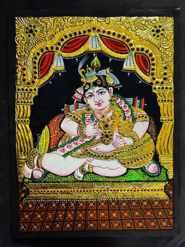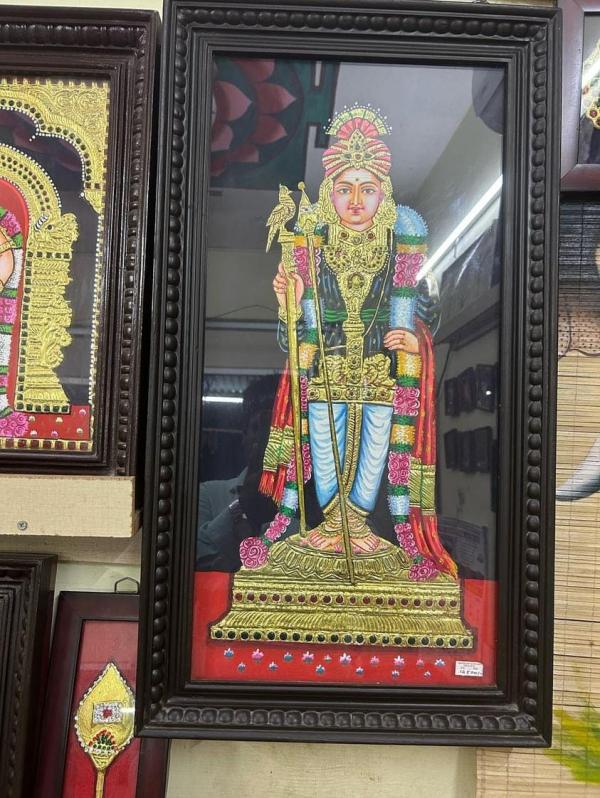 Murugan Tanjore paintings are exquisite depictions of Lord Murugan (also known as Kartikeya or Subramanya), the revered deity of Tamil Nadu, celebrated for his valor, wisdom, and spiritual significanc
