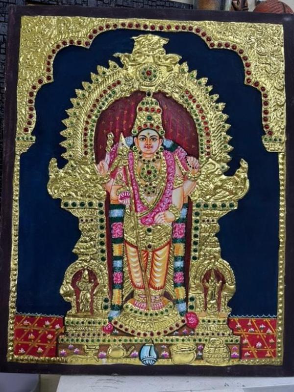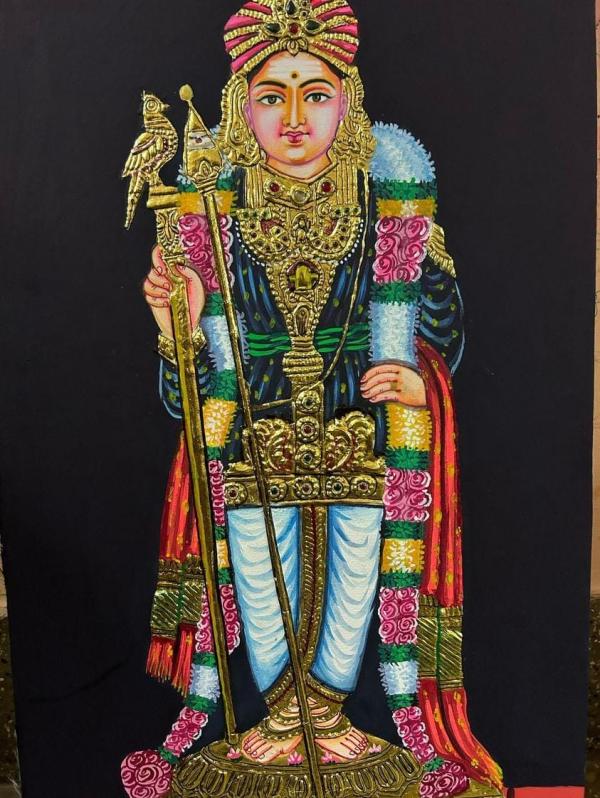 The depiction of Lord Murugan in Tanjore paintings is not just an artistic representation but also a reflection of his significance in Hindu mythology and his revered status among devotees.